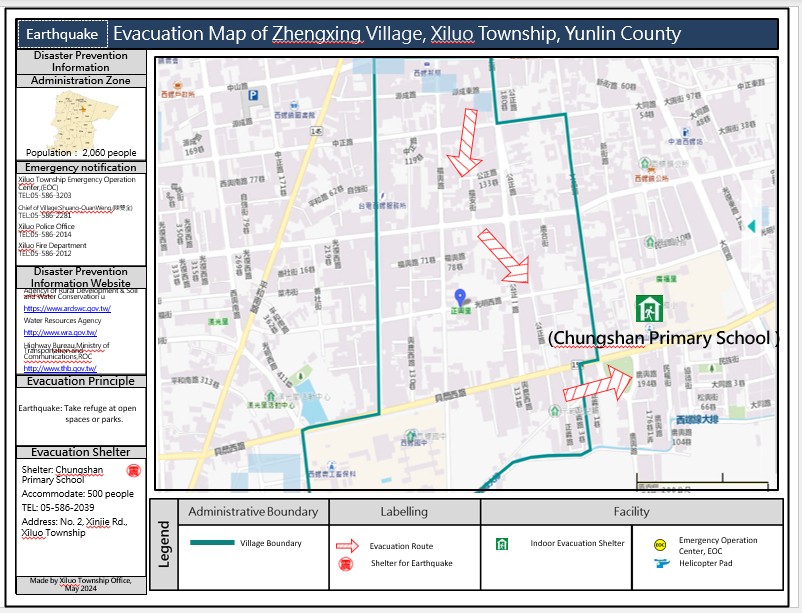 雲林縣西螺鎮 正興里(Zhengxing Village) 震災疏散避難圖